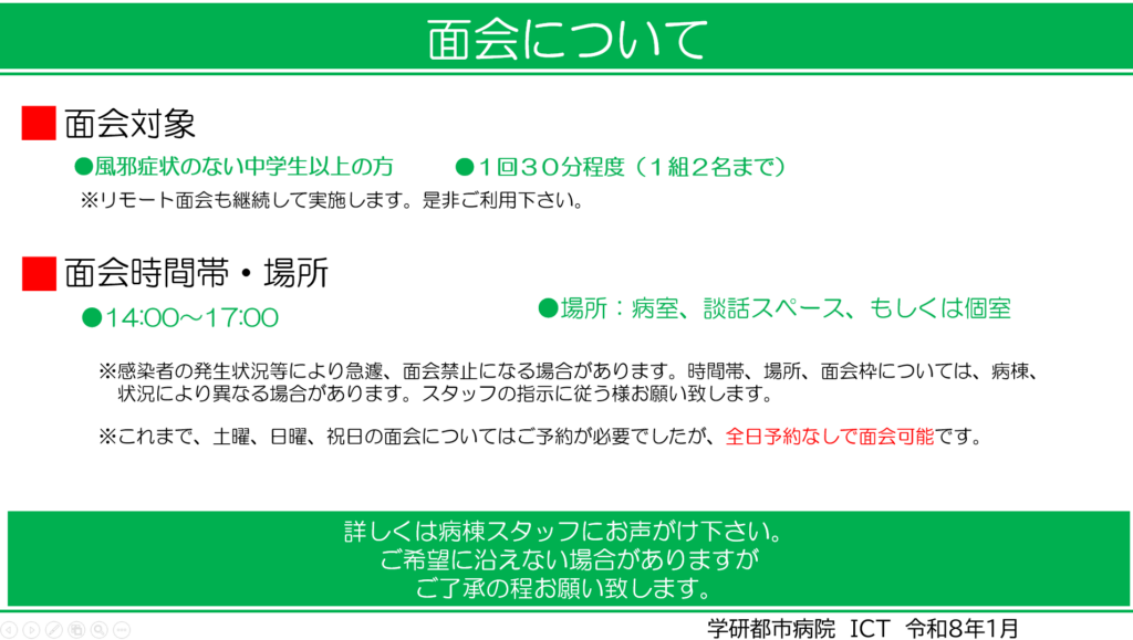 時間外のご面会は治療上、他の患者様の迷惑にもなります。