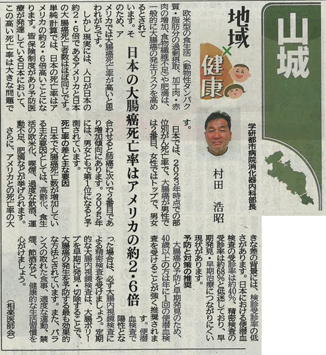京都新聞の “地域×健康” コラムに当院 消化器内科 部長 村田浩昭 医師の記事が掲載されました。