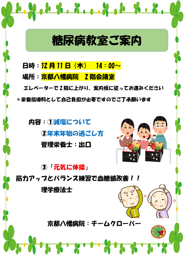 12月11日【木】14時00分から糖尿病教室を開催いたします。