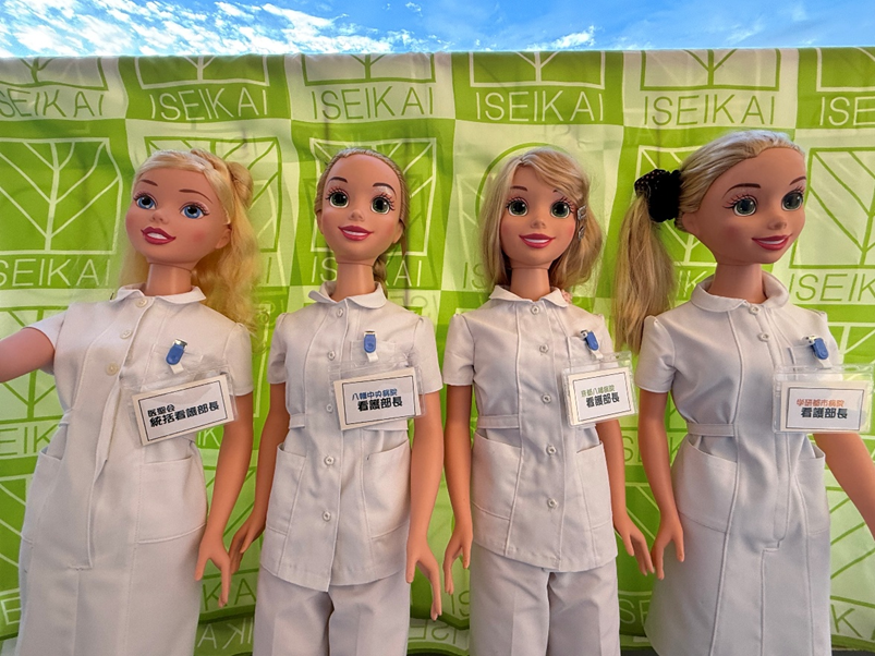 医聖会グループでは、2014年頃、看護学校への営業訪問・就職説明会などに看護師を参加させることが困難だったため、人形4体を購入し、看護師の制服を特注で作成しました。