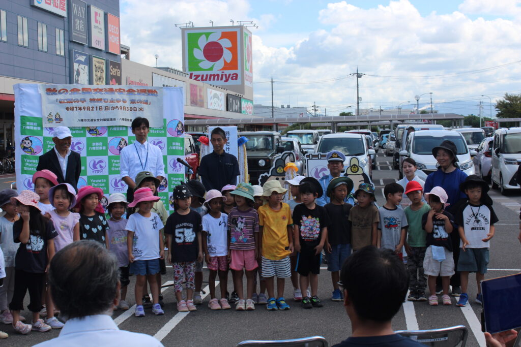 式典には八幡市役所の川田市長をはじめ、地域の関係機関が集い、「交通事故死ゼロ」への願いを込めた啓発活動を行いました。
